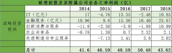 发家于IT产品的联想,在控股公司层面,已逐渐向金融类集团迈进。截止到2018年年底,联想控股的金融业务超IT板块的2.5倍。
